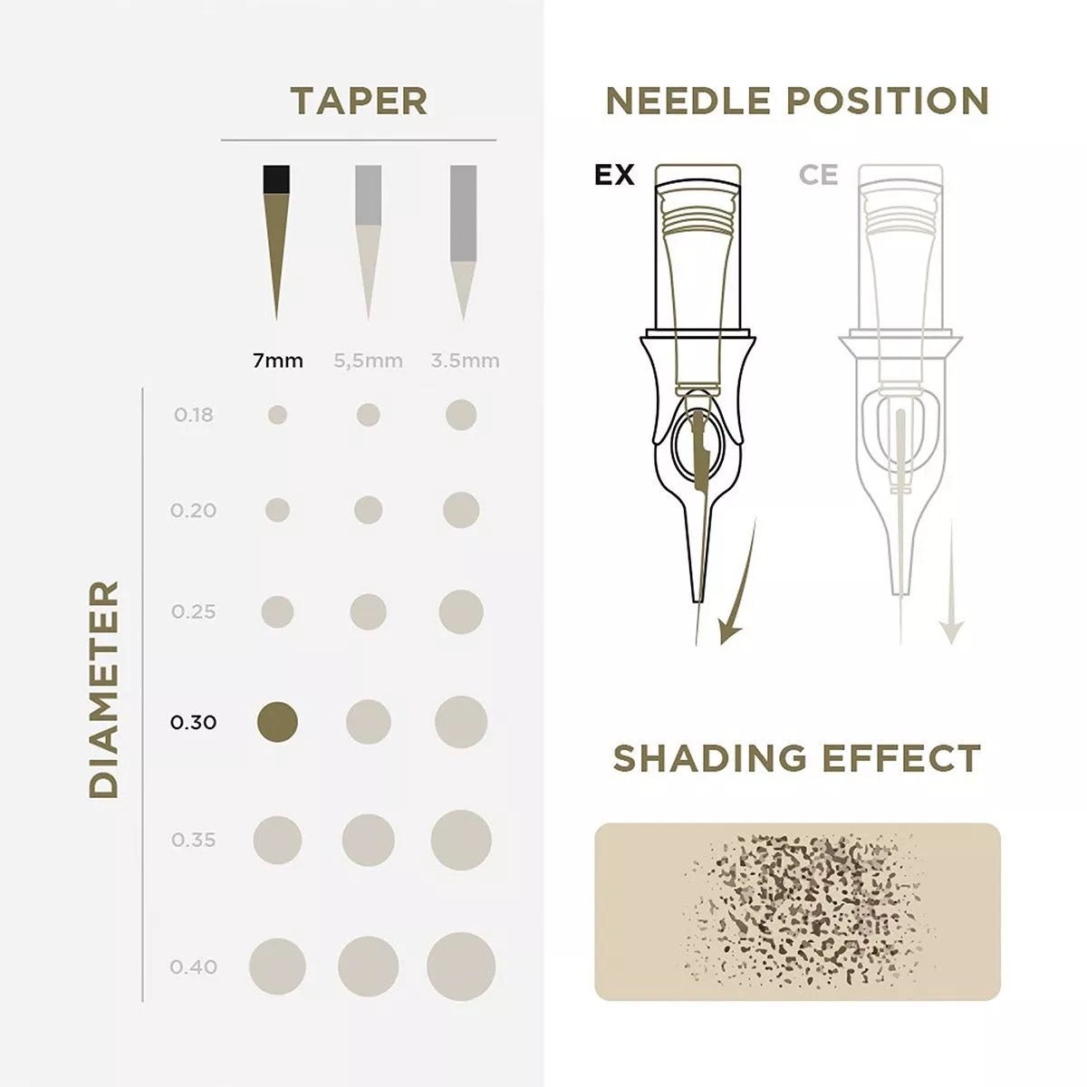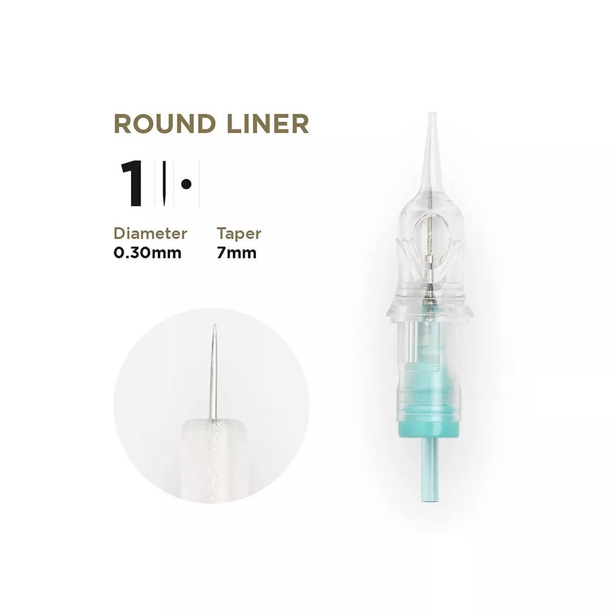 Punta 1R: Geeignet für die besten Details in Tattoos und daUErhaftem Make -up. Es bietet eine optimale Genauigkeit für komplexe Auszeichnungen, dünne Abschnitte und detaillierte Eyeliner in den PMU -Behandlungen.